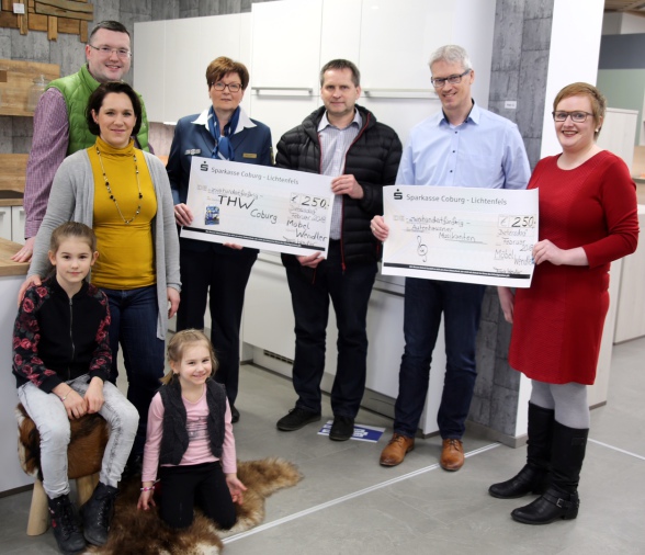 Dietersdorf – Spenden statt Schenken hieß es erneut bei Möbel Wendler in Dietersdorf: Statt Kunden und Lieferanten zum Jahresschluss mit Geschenken und Karten zu bedenken, unterstützte das Familienunternehmen zum dritten Mal gemeinnützige Zwecke in der Region. Geschäftsführer Frank Wendler präsentierte am Freitag zwei Spendenschecks über je 250 Euro, ausgestellt auf das Technische Hilfswerk (THW) Coburg und die Autenhaus’ner Musikanten.